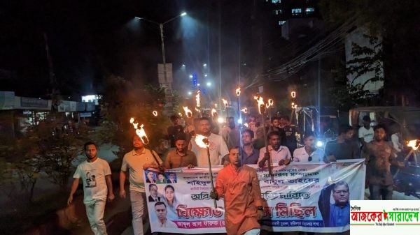 শহিদুল ইসলাম বাবুলের মুক্তির দাবিতে যুবদল নেতা আব্দুল আল ফারুক (রুবেল) এর নেতৃত্বে মশাল মিছিল অনুষ্ঠিত - Daily Ajker Saradesh