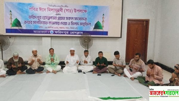 নিজস্ব প্রতিবেদক: পবিত্র ঈদে মিলাদুন্নবী (সা) উপলক্ষে এবং ফরিদপুর প্রেসক্লাবের প্রয়াত সকল সদস্যদের রূহের মাগফেরাত কামনায় দোয়া ও মিলাদ মাহফিল অনুষ্ঠিত হয়েছে।