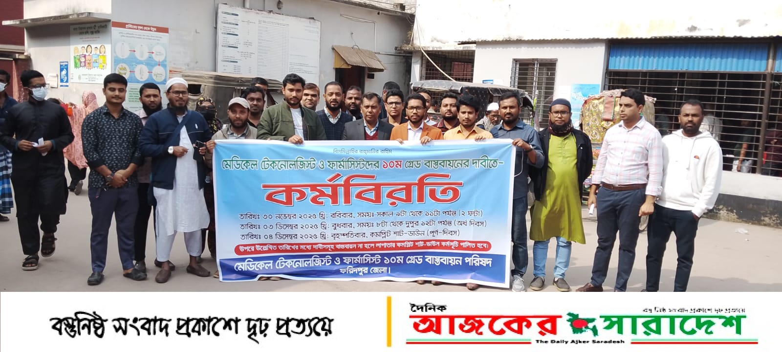 ফরিদপুরে মেডিকেল টেকনোলজিস্ট ও ফার্মাসিস্টদের ১০ম গ্রেড বাস্তবায়নের দাবীতে কর্মসূচি পালিত - Daily Ajker Saradesh