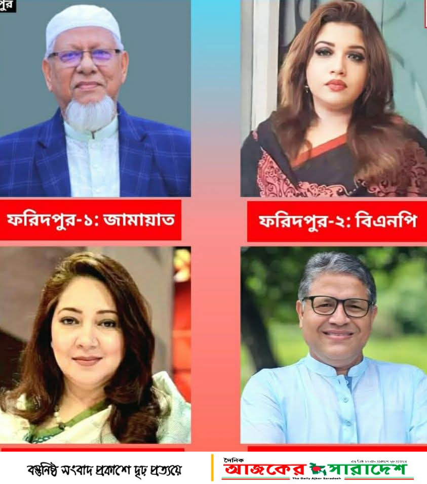 এদের মধ্যে ফরিদপুর-১ আসনে জামায়াতের প্রার্থী ড. মো. ইলিয়াস মোল্লা, ফরিদপুর-২ আসনে বিএনপি প্রার্থী শামা ওবায়েদ ইসলাম, ফরিদপুর-৩ আসনে বিএনপির প্রার্থী চৌধুরী নায়াব ইউসুফ, ফরিদপুর-৪ আসনে বিএনপির প্রার্থী শহিদুল ইসলাম বাবুল বিজয়ী হয়েছেন।