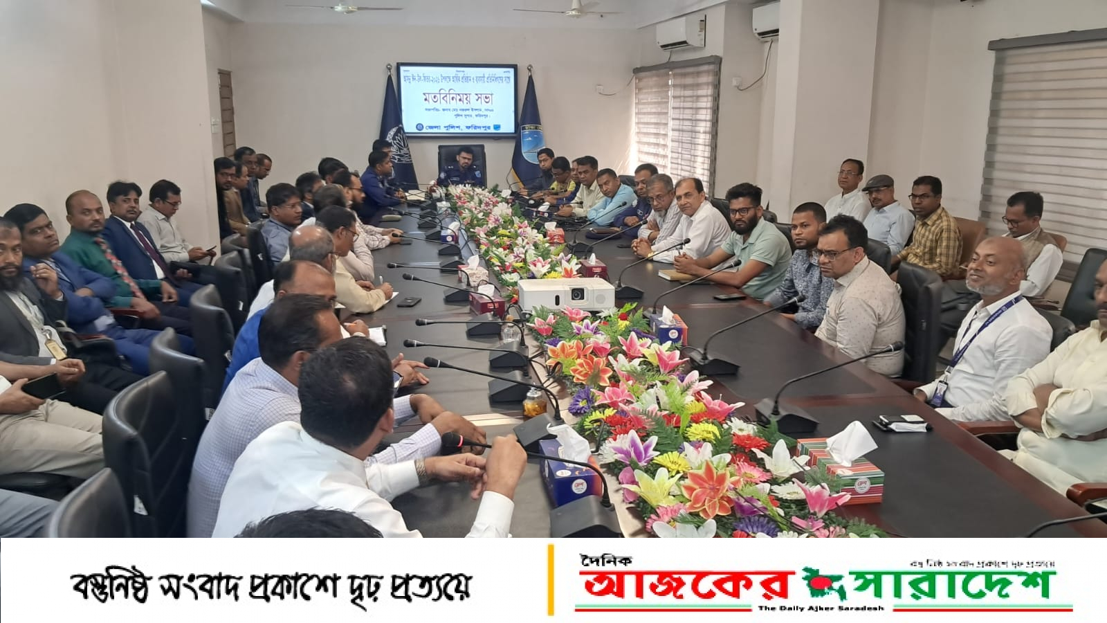 আজ বৃহস্পতিবার ৫ই মার্চ বেলা ১১টায় ফরিদপুর পুলিশ সুপার এর কার্যালয়ে পুলিশ সুপার মো: নজরুল ইসলাম পিপিএম এর সভাপতিত্বে এ মতবিনিময় সভা অনুষ্ঠিত হয়েছে।