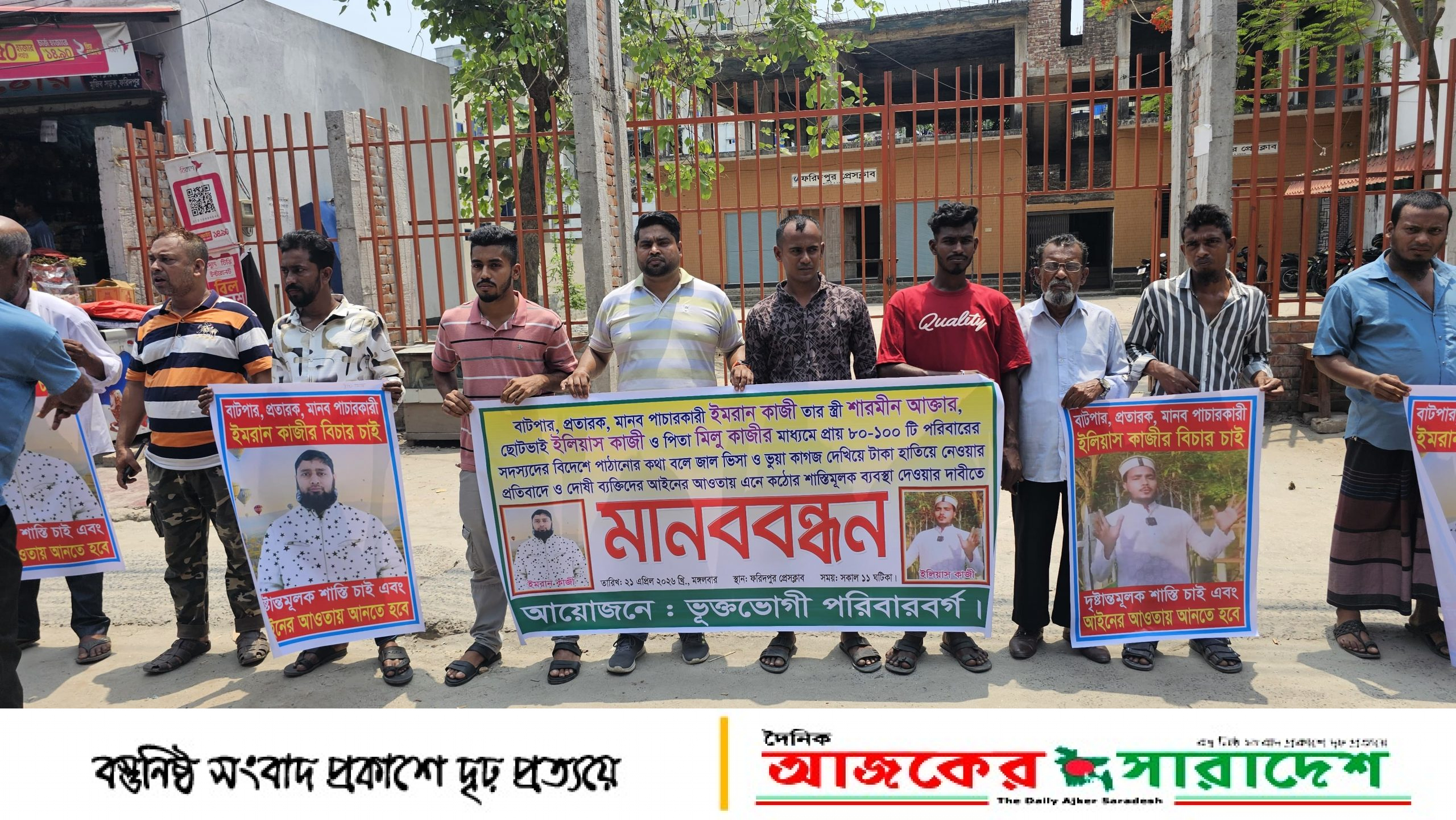 আজ মঙ্গলবার দুপুর ১২টায় ফরিদপুর প্রেসক্লাবের সামনে ভুক্তভোগী পরিবারগুলোর উদ্যোগে এ মানববন্ধন কর্মসূচি পালন করা হয়।